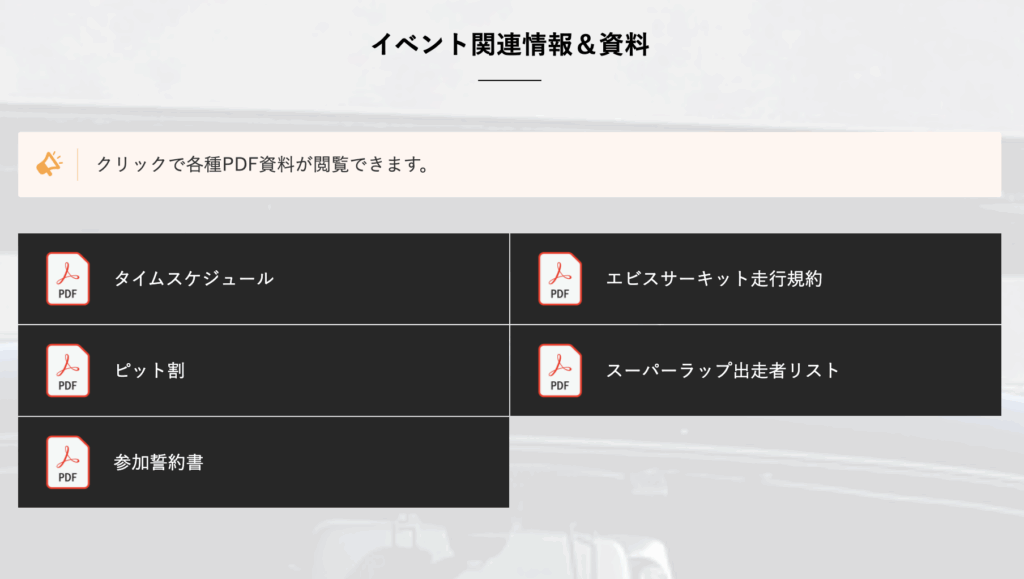 Attackエビス with TRM -CIRCUIT FES 2025-、ピット割やSL出走者リスト、パドック配置に関する案内を掲載しました