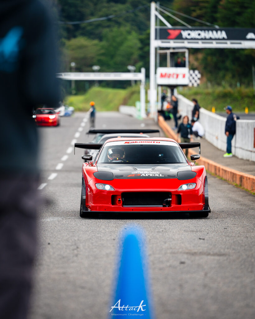 当日の一番時計をマークしたのは、APEXi N1 Sakamoto-ENG RX-7(FD3S)の58秒489。