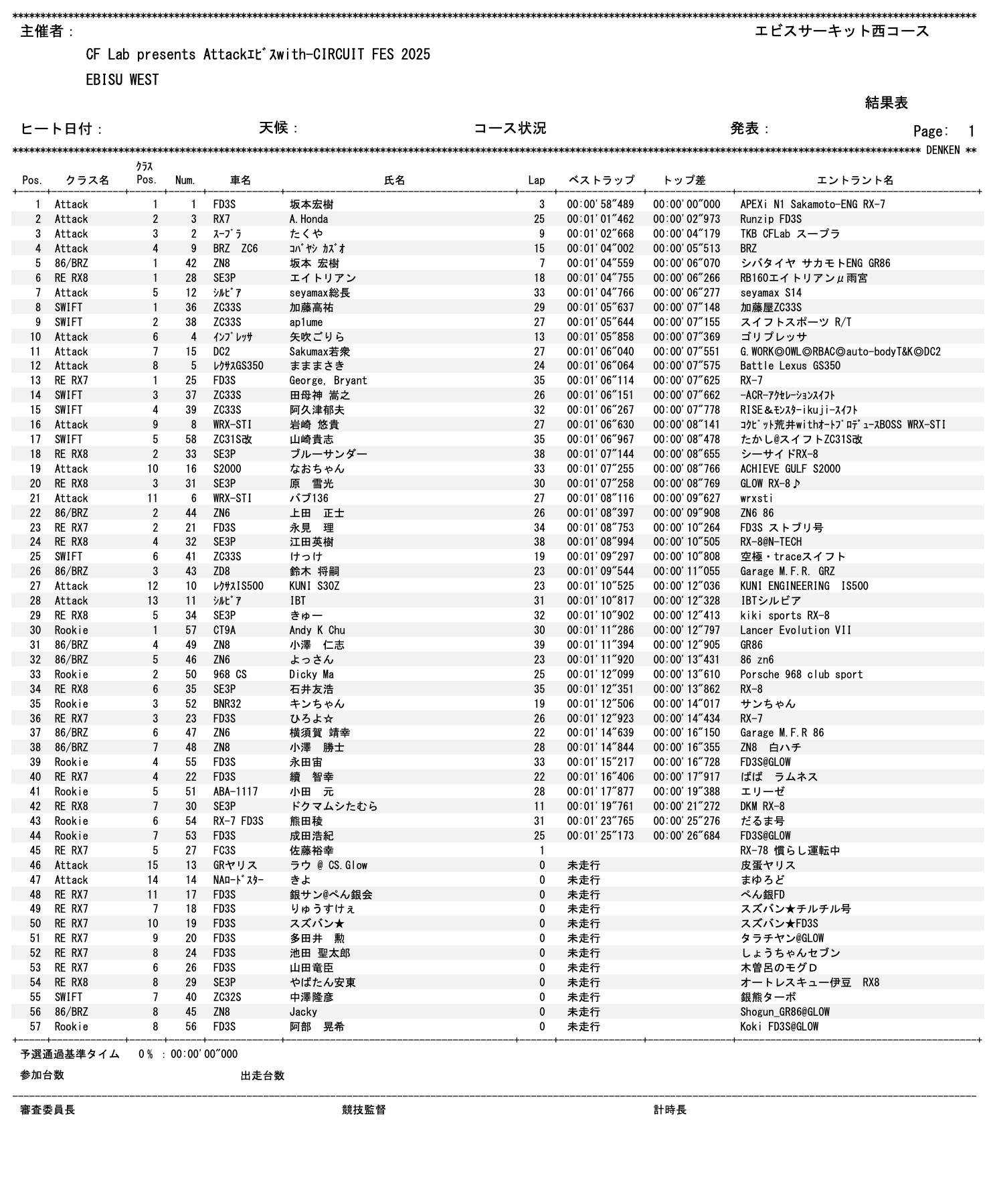 今回の開催にあたり、冠スポンサーの CF Lab様、全面的にご協力いただいた エビスサーキット様、協賛品をご提供くださった MAROYA様/BELL様/鳥川自動車工業様 に心より感謝申し上げます。