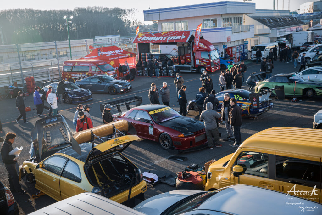 例年、筑波サーキットのAパドックはスペースが限られており、近年はタイムアタックマシンのワイド化や空力アイテムの大型化により、車両移動の導線確保およびイベントの円滑な進行を目的として、午前中のAパドック入場を規制しております。