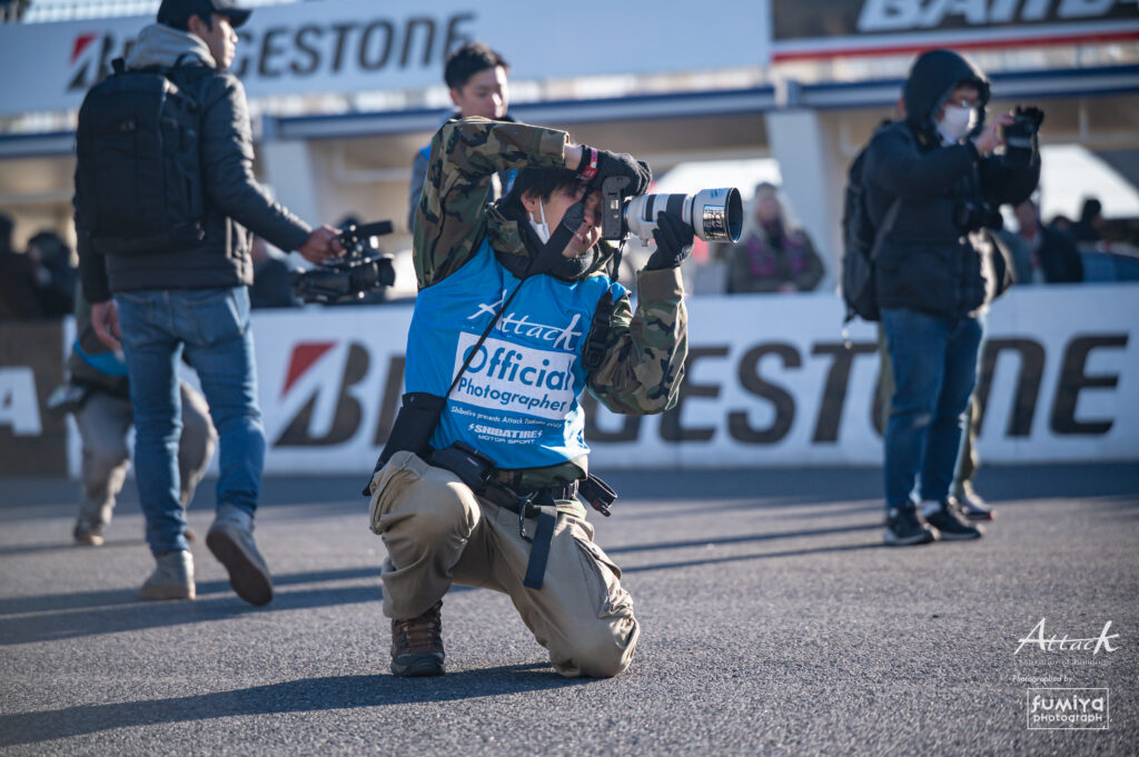 元々サーキットを走るのが好きで、カメラを始める前からAttack筑波の存在は知っており、「いつか参加したい」と思っていました。カメラを始めてからは、Attackの舞台でカメラマンとして写真を残すことがひとつの目標になりました。