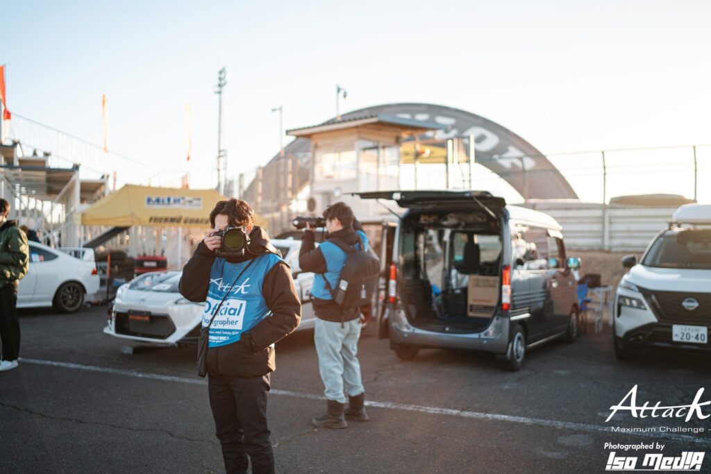 過去にAttackイベントをカメラを持って見学した際、会場全体に漂うピリッとした緊張感や、ドライバー・スタッフの真剣な姿に強く惹かれました。さらに、当時からイベントを撮影しているカメラマンの作例を見た時、その圧倒的なカッコ良さに衝撃を受け、「いつか公式としてこの舞台に立ちたい」と思うようになりました。振り返ると、自分がここまで写真にこだわるようになったのは、Attackの影響が本当に大きいです(笑)。