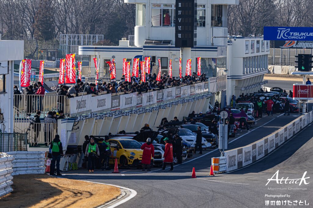 毎年、多くのチューニングカーと挑戦者が集うAttack筑波。タイムアタックに挑むドライバーたちの熱気と緊張感は、走行する車だけでなく、その場にいる全員の心を揺さぶります。