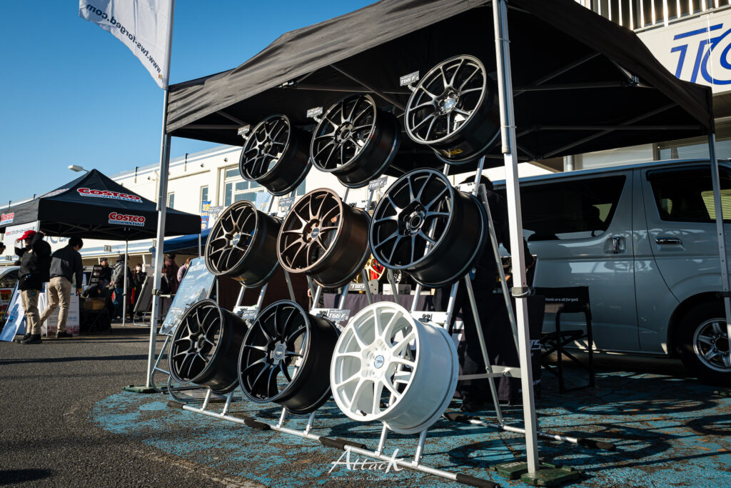 レースやタイムアタック向けホイールブランド。GT-VやTM-02などを展示しました。