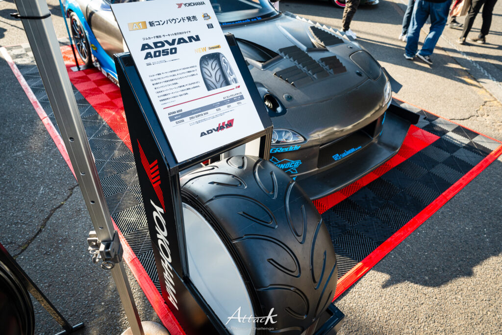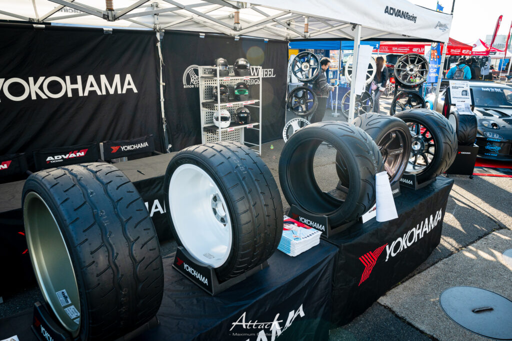モータースポーツで培われた「ADVAN」ブランドを展開。スポーツ走行向けタイヤやホイールを展示しました。