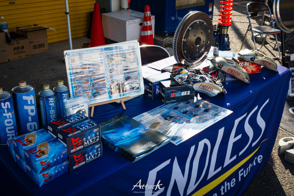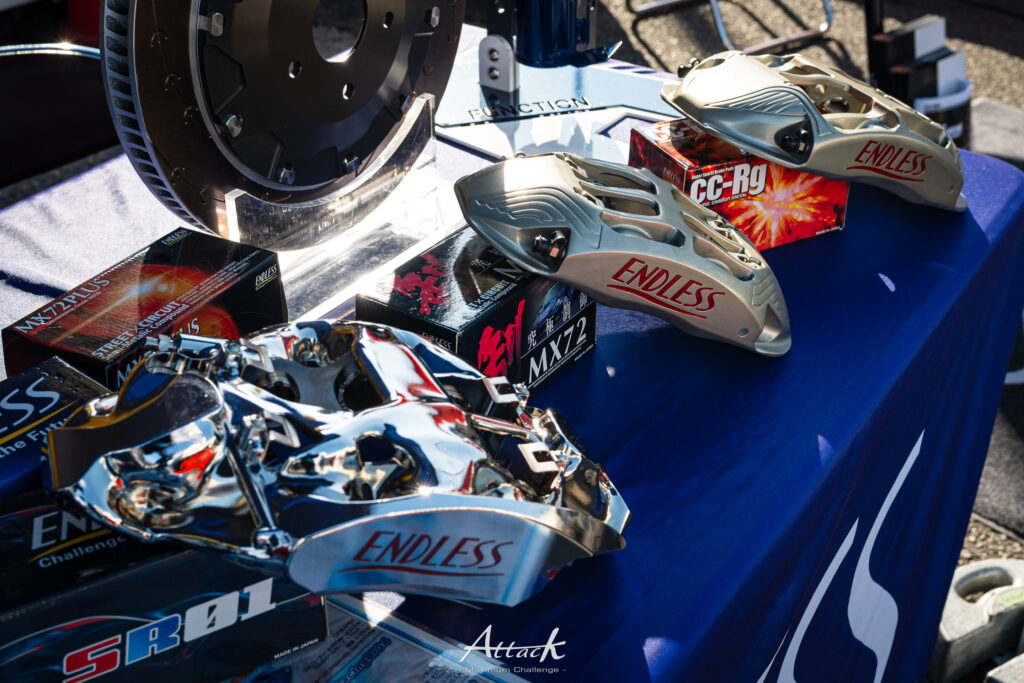 ブレーキ関連製品を展開するメーカー「ENDLESS」。軽量モノブロックキャリパーなどを展示・販売しました。