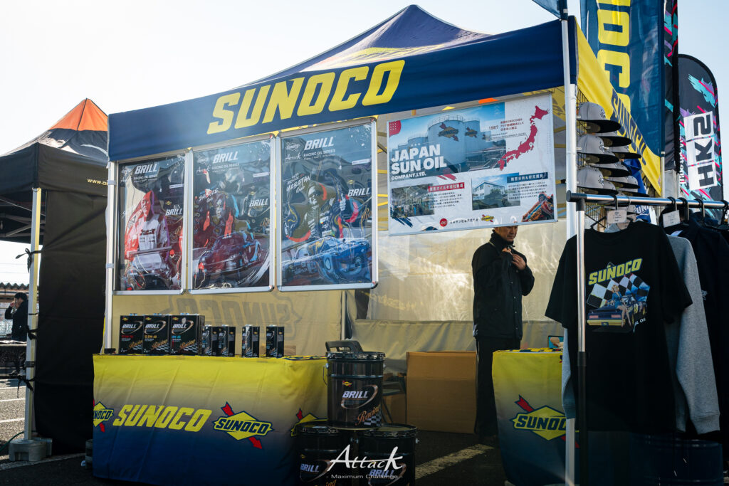「SUNOCO」ブランドの潤滑油を展開。実際にタイムアタックで使用される製品の紹介を行いました。