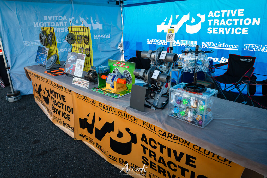 LSD、クラッチ、クロスギアなど駆動系パーツを展開。LSDの動作体感デモや製品展示を実施しました。