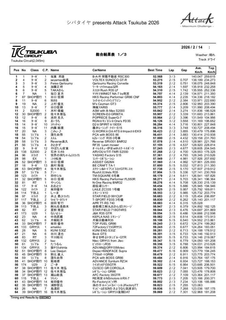 A tuning car time attack event to be held at Tsukuba Circuit Course 2000 on Saturday,