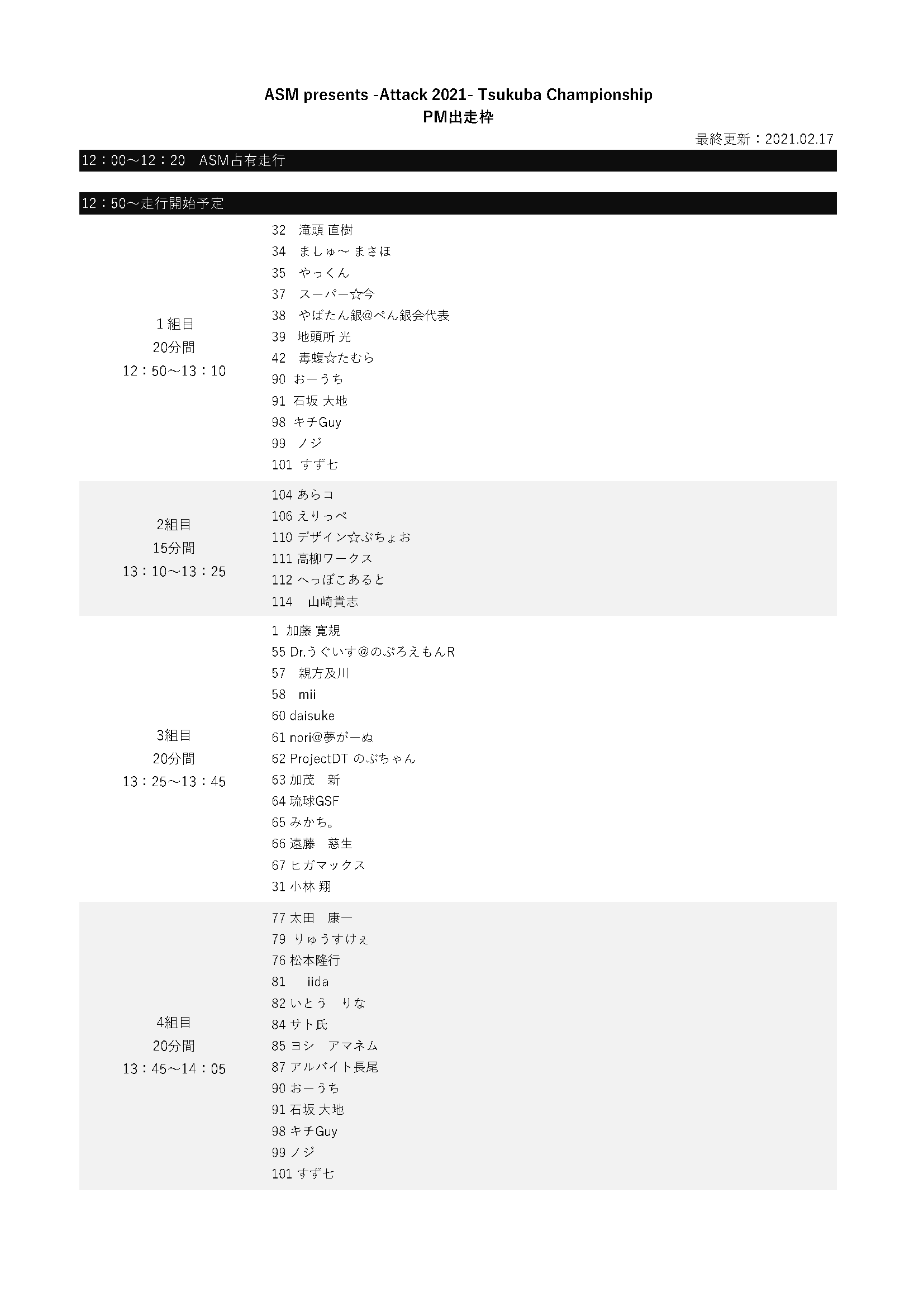 Attack -2013- Fever60 Tsukuba 1208 エントリー情報