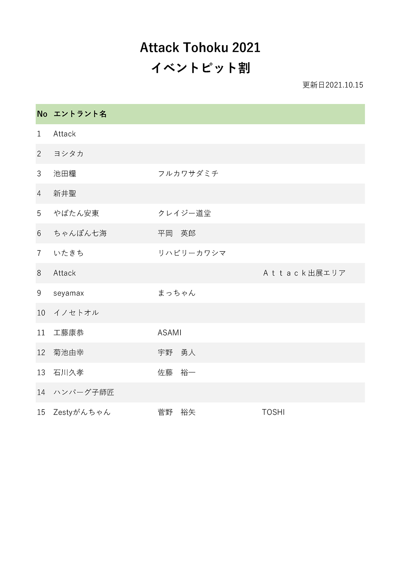 Attack -2014- Fever60♪ Tsukuba 1221 エントリー情報