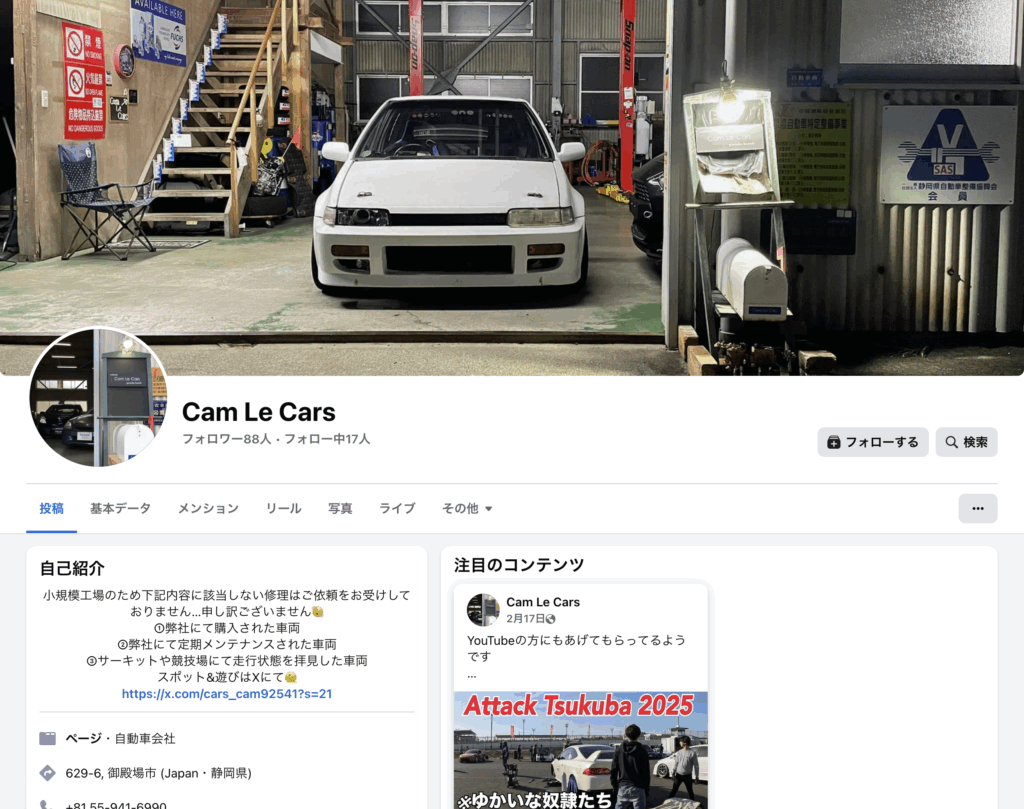 Cam Le Cars(カム・ル・カーズ)は、街の整備工場として、一般のお客様のご要望に応えることを第一に考えています。その合間に、車両製作やメンテナンス、ドライビングスキル向上のサポートも行っています。