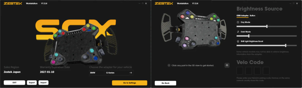 ECU(DME)情報、ステアリングコラム廻りのスイッチ、センターコンソール廻りのスイッチもZESTEK SCX Hubで操作可能です。
